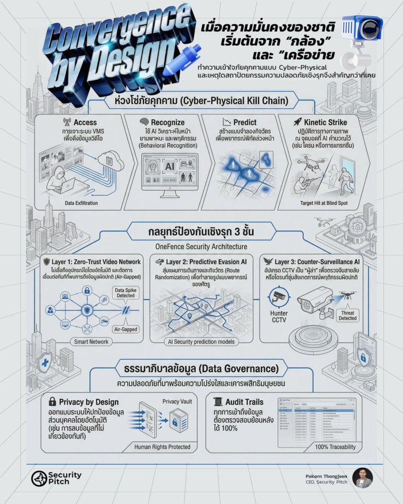 ข่าวดีคือ เราไม่ได้อยู่ในยุคที่ต้องรอให้เกิดเหตุแล้วค่อยซ่อมอีกต่อไป เทคโนโลยี มาตรฐาน และองค์ความรู้ที่จำเป็นเริ่มมีชัดเจนแล้ว ไม่ว่าจะเป็น Zero Trust Architecture, OT Security, IoT Security by Design, Video Analytics, Re-identification, Anomaly Detection และแนวทางด้าน Privacy-Preserving AI สิ่งที่เหลืออยู่คือการนำทั้งหมดนี้มาบูรณาการให้เป็น Converged Security Architecture ที่มองทั้งเครือข่าย กล้อง อุปกรณ์ ข้อมูล พฤติกรรม และปฏิบัติการอยู่ในภาพเดียวกัน